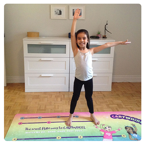 There are TWO sides of a cartwheel - RIGHT and LEFT! Begin with the side that feels most natural. Work on both right and left cartwheels for an extra challenge by facing the opposite way. Repeat your cartwheel until your hands and feet land on the circles of your age line.